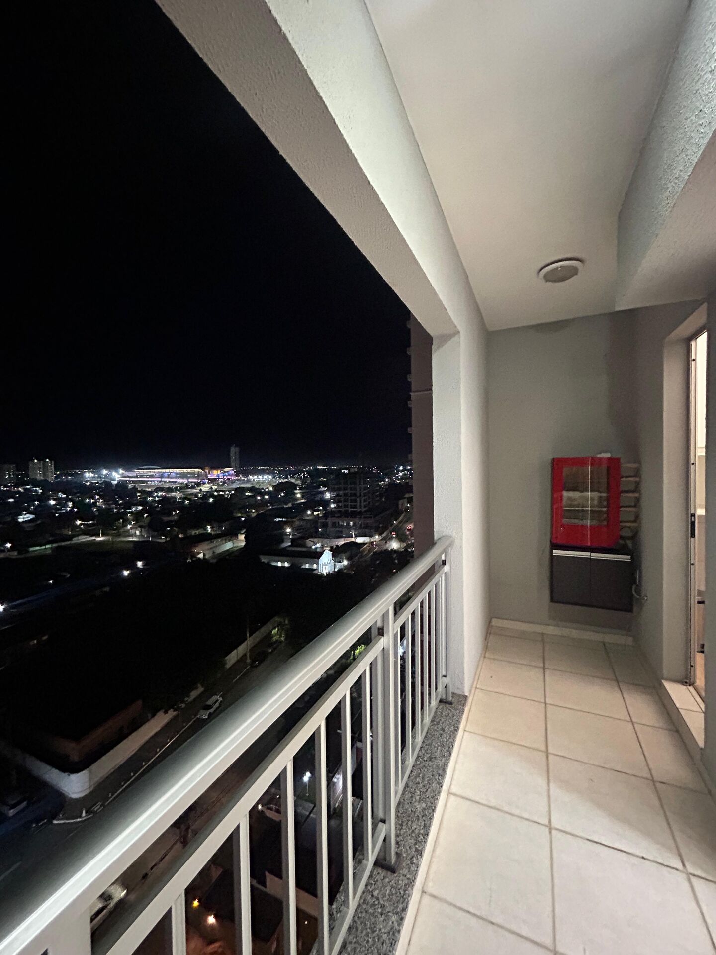 Sacada ampla, com ponto para churrasqueira elétrica e a gás.