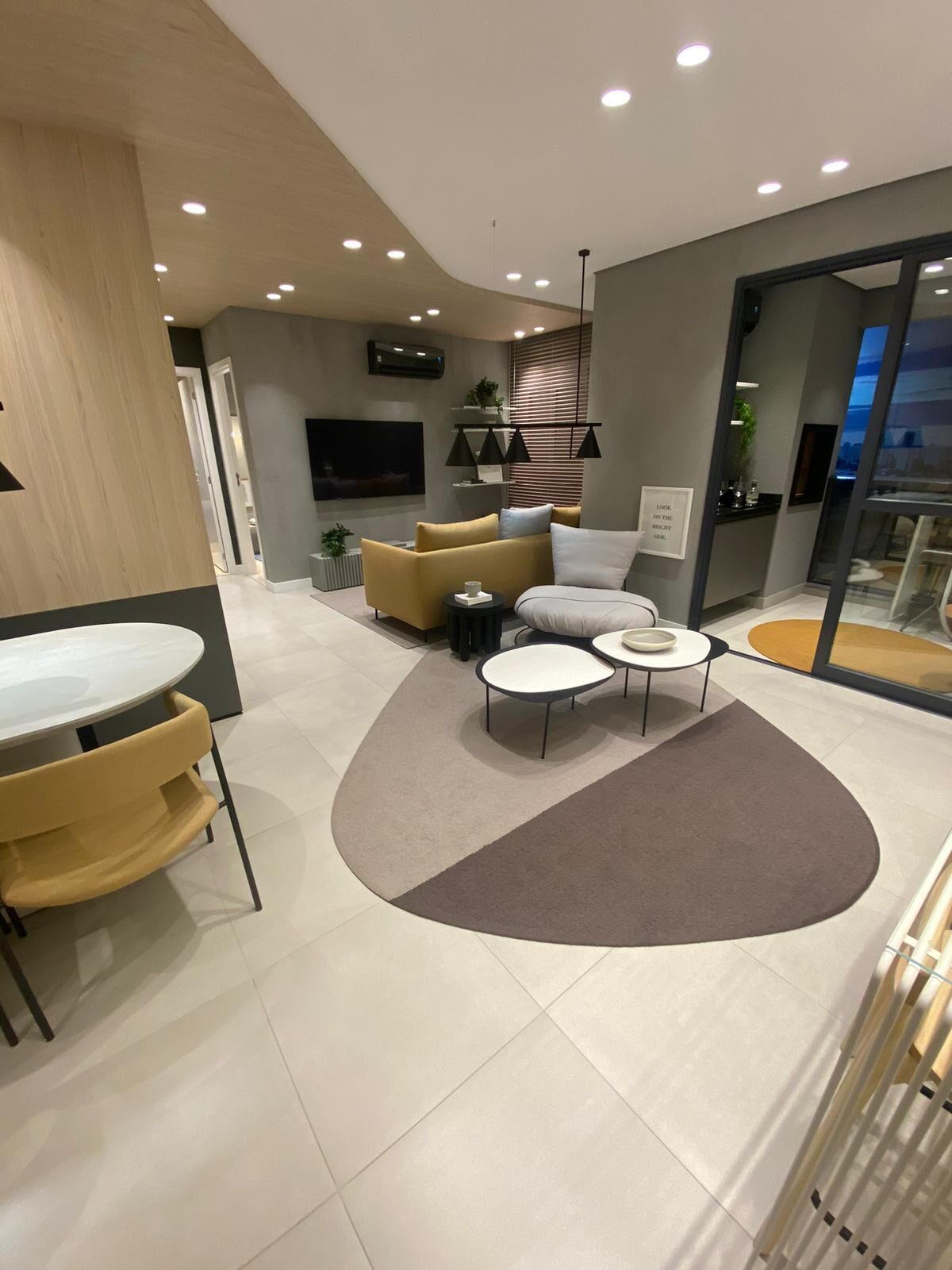 Planta de 88 M², com sala estendida, box nos banheiros, sacada com cortina de vidro.