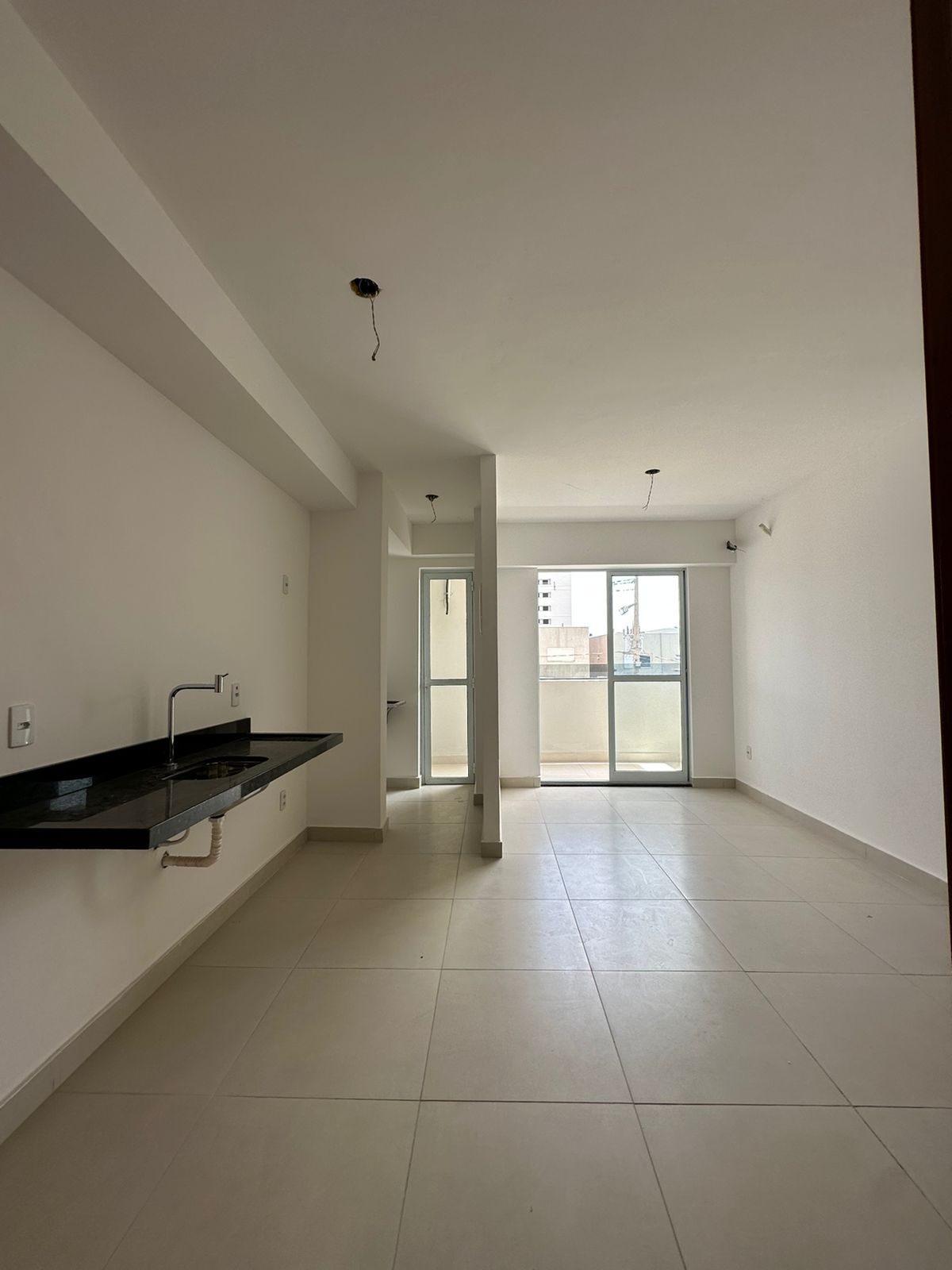 Apartamentos com acabamento de alto padrão, piso porcelanato, bancadas em granito.